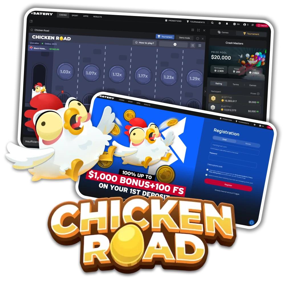 Chicken Road on Batery is a fast crash-style casino game where you predict how far a chicken crosses the road before the round ends and the multiplier stops. We host the game on a licensed platform that supports Canadian dollars, Interac, cards, and popular e-wallets. New players can claim a welcome bonus on the first deposit: 100% up to $1,000 + 100 FS. A welcome chain on the first 5 deposits offers casino 500% up to $5,000 + 225 FS.